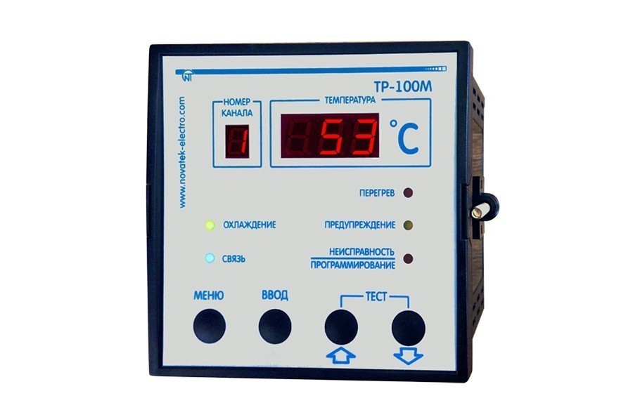 Цифровое температурное меню ТР-100М является микропроцессорным устройством, предназначенным для измерения и контроля температурного режима сухого трансформатора по четырем датчикам, подключаемым по двух — или трехпроводной схеме, с последующим отображением температуры на дисплее и выдачей сигналов тревоги при выходе каких-либо параметров за установленные пределы.