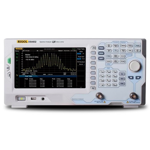 Анализатор спектра DSA832 - это прибор с небольшими размерами и весом, имеющий отличное соотношение цены и возможностей. Цифровая технология ПЧ обеспечивает исключительную производительность и стабильность при анализе спектра. В анализаторе спектра DSA832 имеется возможность расширенных измерений мощности, гармоник, шумов и искажений, ЭМИ измерений, а опциональный трекинг-генератор позволяет использовать анализатор спектра Rigol DSA832 для измерения S-параметров.