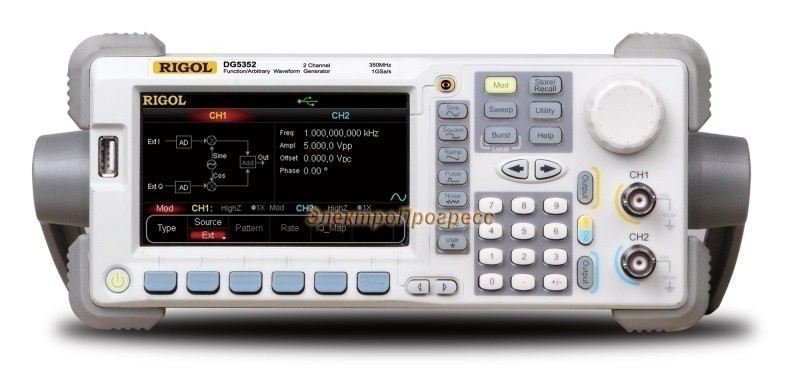 Генераторы сигналов произвольной формы Rigol DG5101, Rigol DG5102, Rigol DG5251, Rigol DG5252, Rigol DG5351, Rigol DG5352 являются многоцелевыми генераторами, сочетающие различные возможности, включая функции формирования сигналов произвольной формы, сигналов с IQ-модуляцией, сигналов с ППРЧ (псевдослучайная перестройка рабочей частоты - опционально) и цифровых сигналов (опционально).
