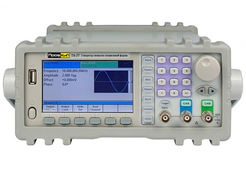 Генераторы сигналов специальной формы двухканальные ПрофКиП Г6-37 предназначены для воспроизведения высокостабильных по частоте сигналов синусоидальной, прямоугольной, треугольной, импульсной формы, а так же шумового сигнала и напряжения постоянного тока. Генераторы воспроизводят так же сигналы произвольной формы, имея 50 заводских предустановок, и возможность программирования формы выходного сигнала оператором.
