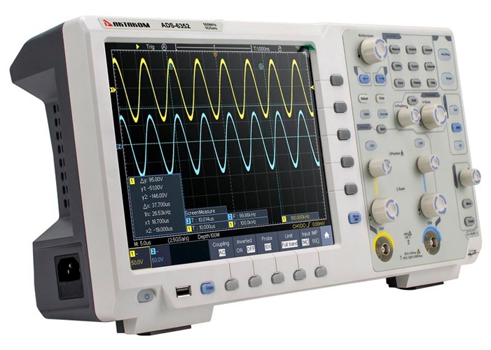 Двухканальный многофункциональный осциллограф ADS-6352​ выпускается с полосой пропускания 500 МГц. Аналогично другим осциллографам Актаком серии ADS-6000 в ADS-6352​ установлен сенсорный мультитач дисплей с размером 10,4", который позволяет проводить управление прибором и измерения при помощи касаний и жестов. Уже в стандартной поставке в одном корпусе объединены до 7 измерительных приборов.