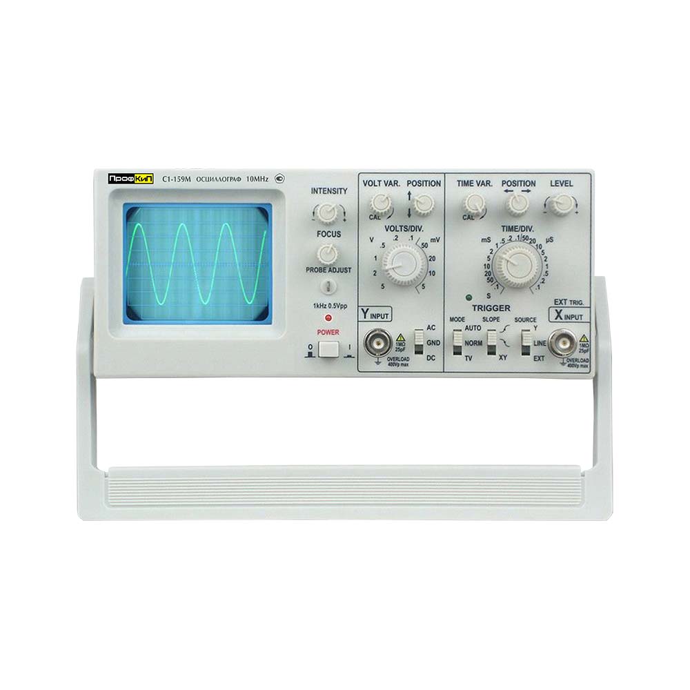 Осциллограф универсальный ПрофКиП С1-159М предназначен для исследования формы периодических электрических сигналов путем визуального наблюдения и измерения амплитуд в диапазоне от 0 МГц до 10 МГц.