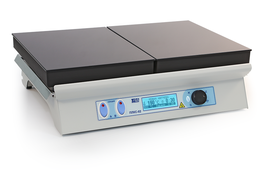 Плита нагревательная лабораторная секционная ПЛКС-02 имеет две секции нагрева. Каждая секция нагрева может работать отдельно или совместно. При совместной работе секций температура разогрева одинакова по всей нагревательной поверхности обеих секций.