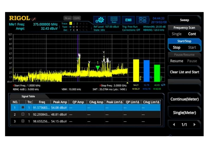 Приложение для измерения электромагнитных помех RSA3000-EMI для анализаторов спектра реального времени Rigol серии RSA3000 (RSA3030 и RSA3045) представляет собой комплексное решение для обеспечения предварительного тестирования на соответствия требованиям электромагнитных помех. Оно включает сканирование диапазона, поиск пиков, задание предельных линий, возможность использование несколько одновременных детекторов CISPR и прочее.