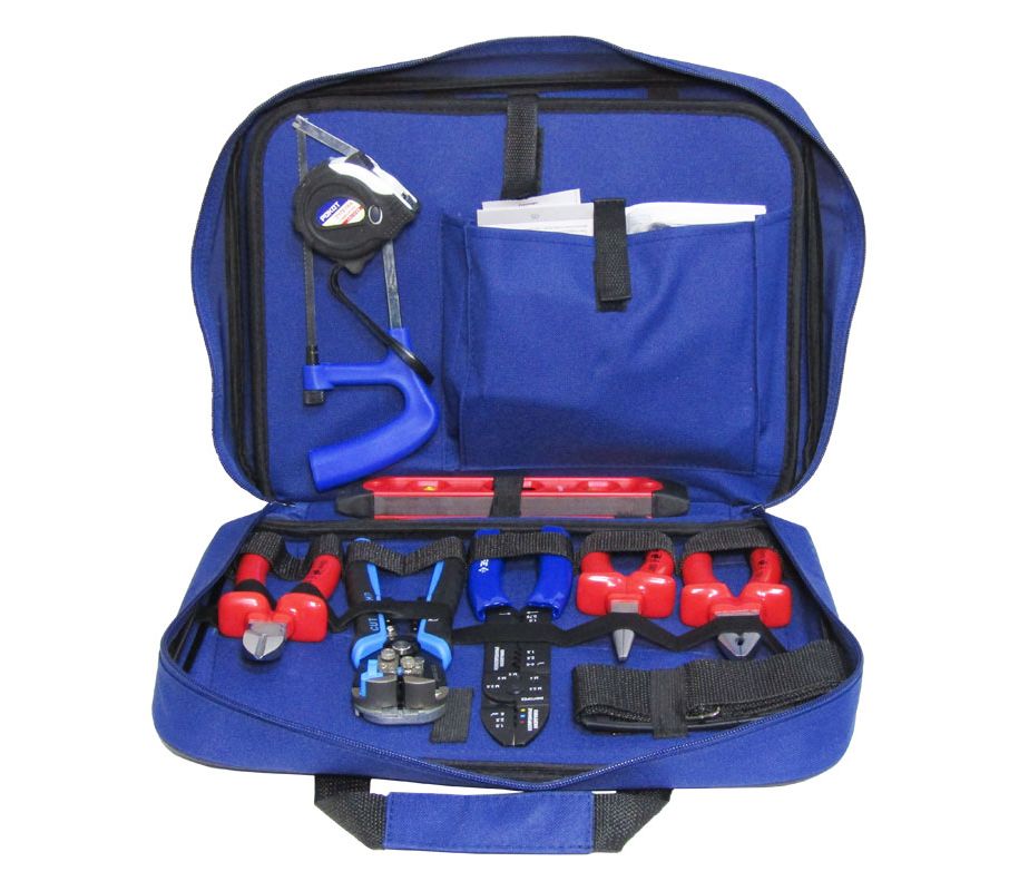 Набор состоит из 22 предметов, в который входит: цифровой мультиметр, автоматический съемник изоляции, нож диэлектрический, стриппер многофункциональный, изолированные пассатижи, изолированные длинногубцы, изолированные бокорезы, нож с выдвижным лезвием, ножовка по металлу, ключ гаечный разводной, молоток слесарный, отвертки SL(3шт.), отвертки PH (2шт.), пробник электрический, бесконтактный пробник напряжения, рулетка, уровень строительный, фонарь налобный, сумка.