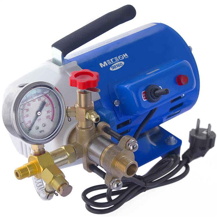 МЕГЕОН 98160 – это опрессовочный насос с электрическим приводом специально разработанный для гидроиспытаний ёмкостей, проверки герметичности магистралей, трубопроводов, водопровода, сантехники, систем пожаротушения и отопления, технологического оборудования, паровых котлов и многих других применений, идеален для добавления рабочей среды в закрытые контуры. В качестве резервуара объёмом 17 литров используется пластиковый контейнер устойчивый к воздействию разнообразных жидкостей, в котором прибор поставляется. Инструмент оборудован регулируемым редукционным клапаном, на выходе установлен заполненный манометр рассчитанный на 70 кгс/см2 (7 МПа) с хорошо читаемой шкалой для контроля создаваемого давления, устройством сброса по завершении работ и гибким РВД для подсоединения к испытуемому объекту. Фильтр грубой очистки для защиты от взвеси и крупных частиц.