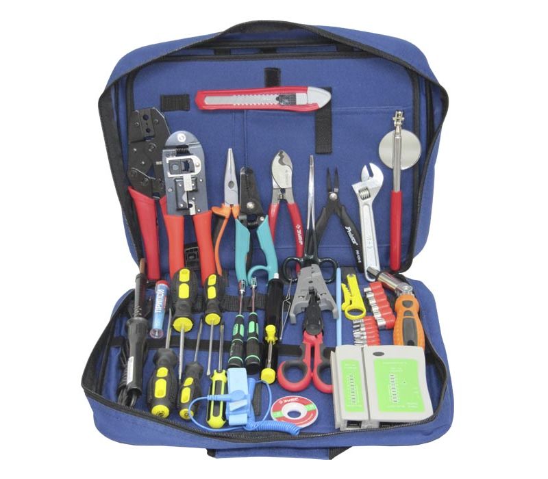 Набор для монтажа телекоммуникационных сетей (аналог Proskit 1PK-19382B), с помощью которого специалисты производят монтаж и обслуживание кабелей связи, мониторинг и диагностику систем, устранение последствий дефектов оборудования, определяются способы восстановления сетей.