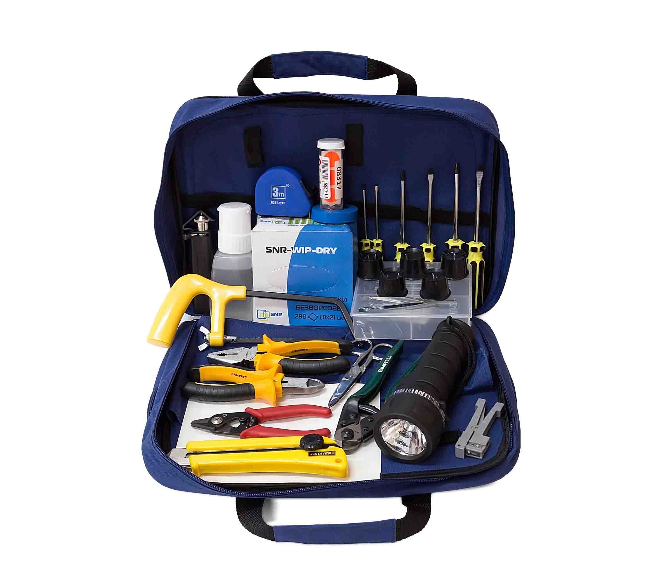 Набор разработан для обеспечения монтажных и эксплуатационных бригад всем необходимым инструментом – от серии инструмента для зачистки оптоволокна и снятия изоляции до набора луп, фонарика и салфеток для протирки волокна.