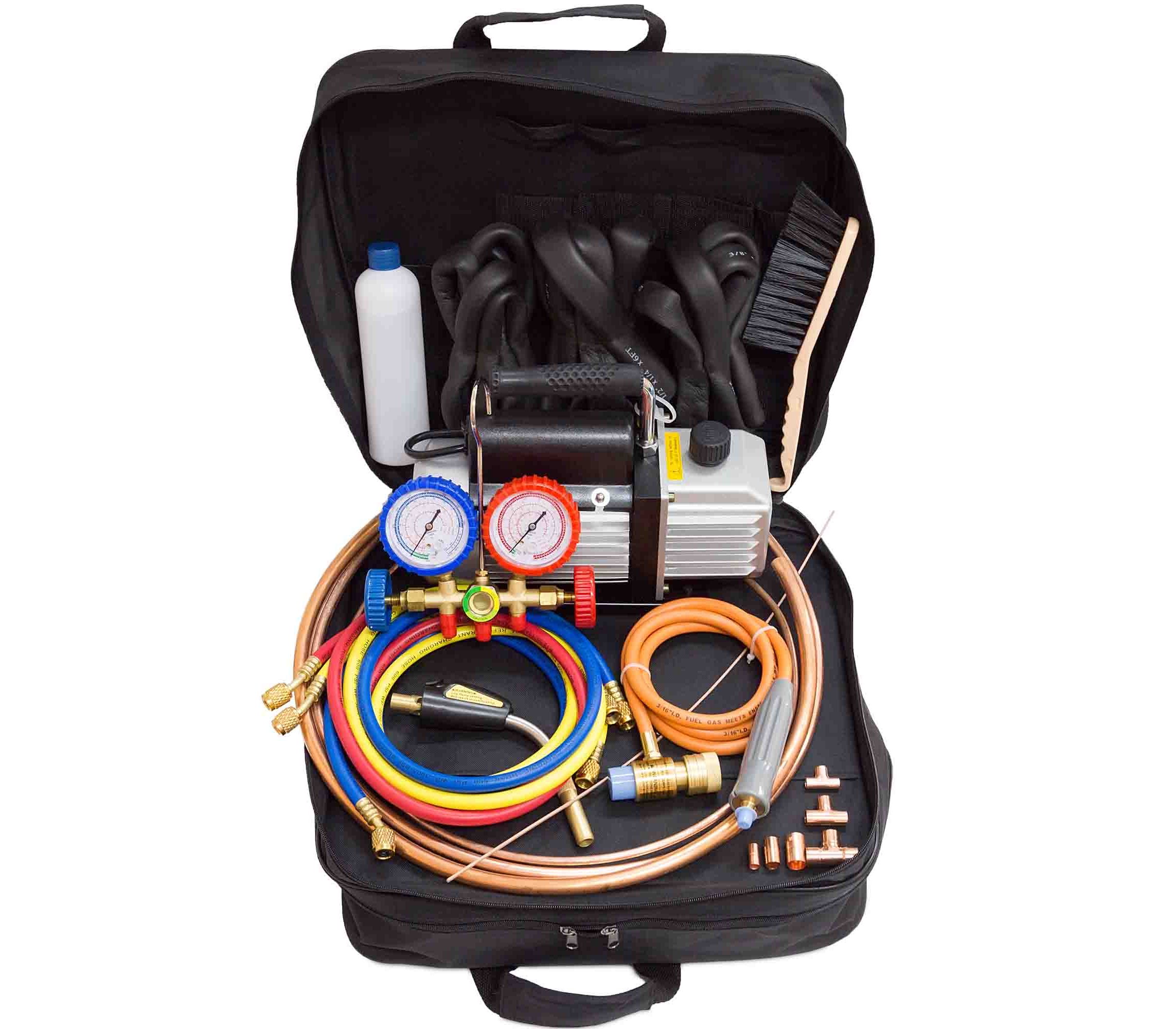В состав входят: горелка со шлангом, манометрическая станция, шланги с фитингами, труба медная, муфты, тройники, труба изоляционная — всего 17 предметов. Инструмент сертифицирован (при необходимости предоставляется соответствующая документация).