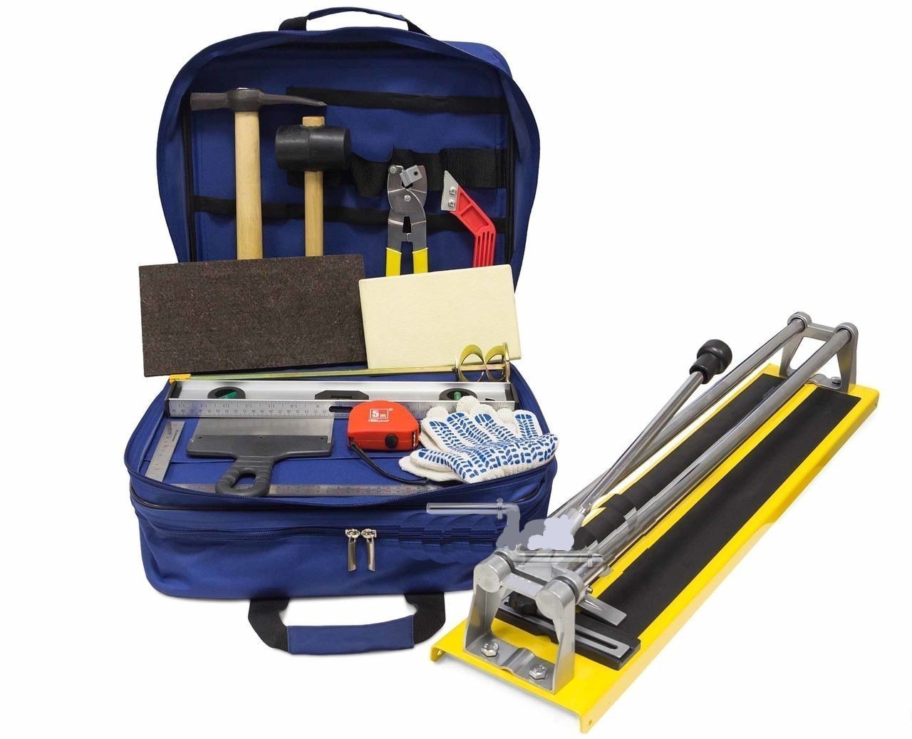 Набор плиточника состоит из плиткореза, кусачек, миксера, скребка, шпателя, резинового молотка, уровня, угольника и пр.