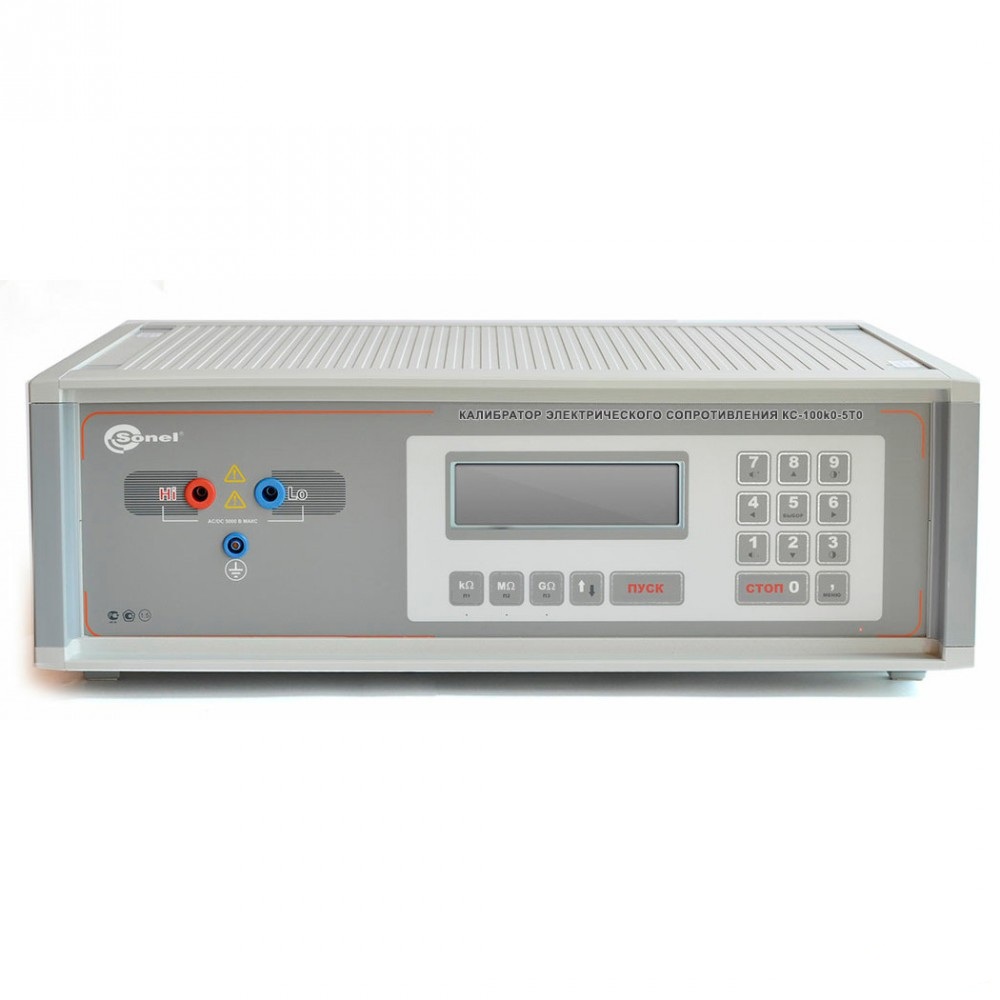 Калибратор КС-10G0-10T0 обеспечивает воспроизведение электрического сопротивления в диапазоне от 10 ГОм до 10 ТОм. Необходимое сопротивление устанавливается пользователем с помощью клавиатуры калибратора. С использованием программного обеспечения из комплекта поставки, возможно управление калибратором с персонального компьютера, включая возможность программирования поверочных процедур.