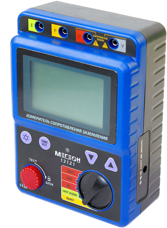 МЕГЕОН 13121 – это портативный цифровой измеритель сопротивления заземления. Прибор может измерять по двух или трёхпроводной схеме. Для компенсации погрешности измерения сопротивления в приборе предусмотрен измеритель напряжения земли. Для специальных измерений предусмотрены непрерывный режим и режим измерения по таймеру.