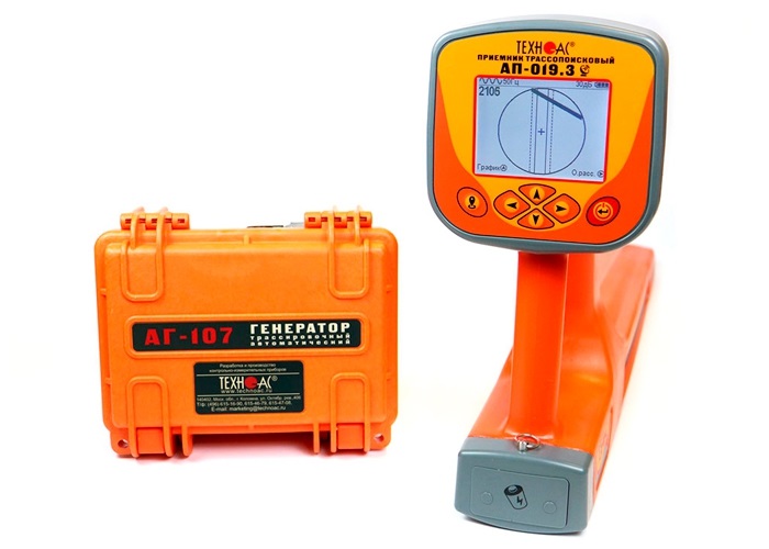 Комплект оснащен новейшим компактным автономным генератором АГ-107 со встроенными элементами питания, дисплеем и встроенной индукционной антенной, для трассировки коммуникации бесконтактным способом.