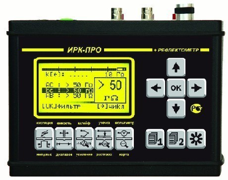 Кабельный прибор ИРК-ПРО 20 предназначен для: - измерения сопротивления изоляции, шлейфа, омической асимметрии, электрической емкости всех типов кабелей связи. - определения расстояния до участка с пониженным сопротивлением изоляции кабеля, определения места обрыва или перепутывания жил кабеля.