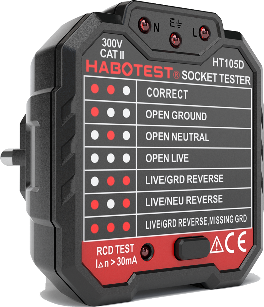 Habotest HT105D представляет собой прибор для проверки электрических розеток.