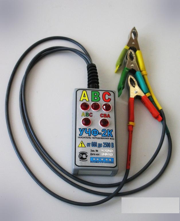 Указатели чередования фаз типов УЧФ-1К, УЧФ-2К созданы для определения прямой и обратной последовательности, а также отсутствие одной из фаз в трехфазных промышленных системах электросетей напряжением от 220 до 2500 В и частотой 50 Гц.