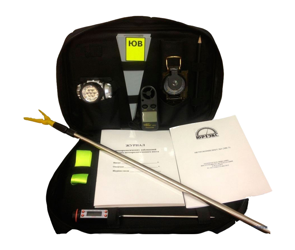 Метеокомплект МК-3Б с поверенным цифровым чашечным анемометром с крыльчаткой, с метеорологическим термометром-пращем (данные приборы включены в государственный реестр средств измерений РФ, Казахстана и Беларуси).