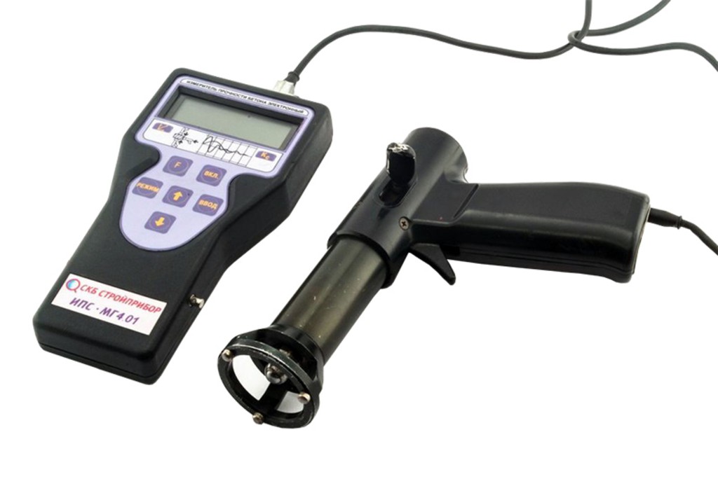 Приборы ИПС-МГ4.01ИПС-МГ4.03ИПС-МГ4.01 (цветной дисплей), ИПС-МГ4.03 (цветной дисплей) и ИПС-МГ4.04 (цветной дисплей) предназначены для определения прочности бетона по ГОСТ 22690, на основе предварительно установленной зависимости между прочностью бетона, определенной при испытании образцов в прессе и измеренным ускорением, возникающим при взаимодействии индентора измерителя с бетонным образцом, при постоянной энергии удара (Е=0,12 Дж).