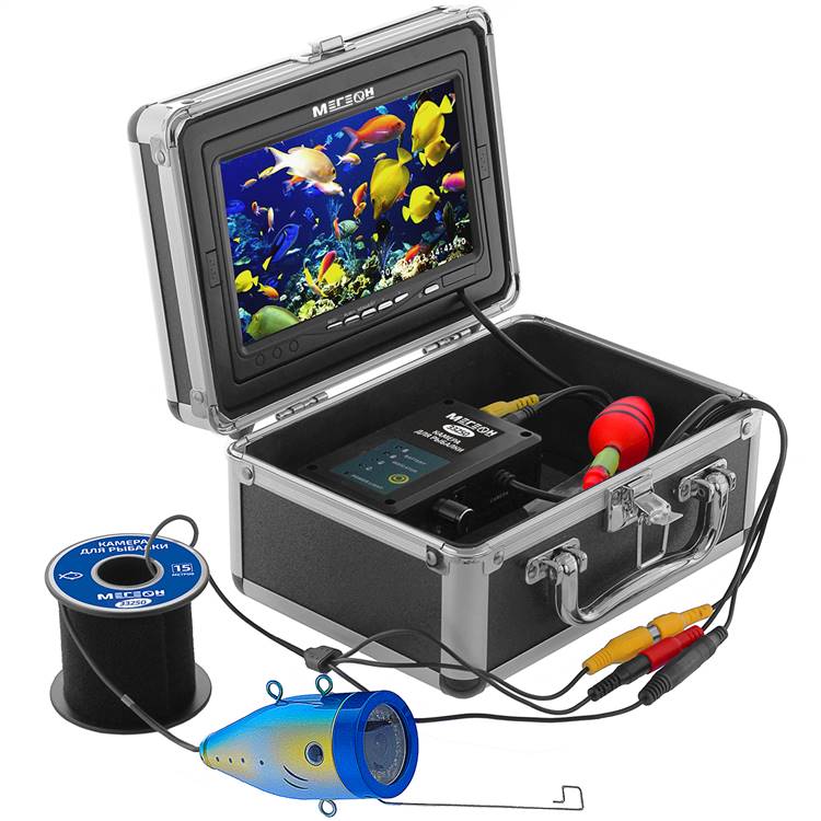 МЕГЕОН 33350 – новинка в модельном ряду любительских камер для наблюдения за обитателями всех видов водоёмов. К особенностям можно отнести: соединительный провод длиной 50 метров, возможность записи фото и видео в реальном времени. Подсветка имеет 12 ярких светодиодов с функцией регулировки интенсивности света, что в свою очередь позволяет использовать прибор в замутнённой воде с низким уровнем прозрачности, а также в тёмное время суток. А чтобы не отпугивать рыбу, применена регулируемая инфракрасное освещение состоящее также из 12 ИК-диодов.